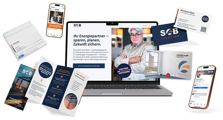 Ein seriöser Auftritt ist für dich als Energie-Makler der Schlüssel zum Erfolg. Dank des Solution Marketing Pakets nehmen Kunden und Interessenten dich jederzeit als Experten wahr. Wir fördern dein Marketing, ohne dich von deinem Kerngeschäft als abzuhalten.